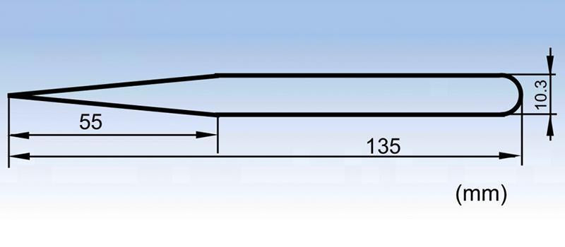 The 00-JP pointed tip stainless steel ultra fine tweezers have a width of 10.3mm, which are suitable for hand grips. The thin pointed tip has a length of 55mm and is suitable for clamping objects in narrow spaces.