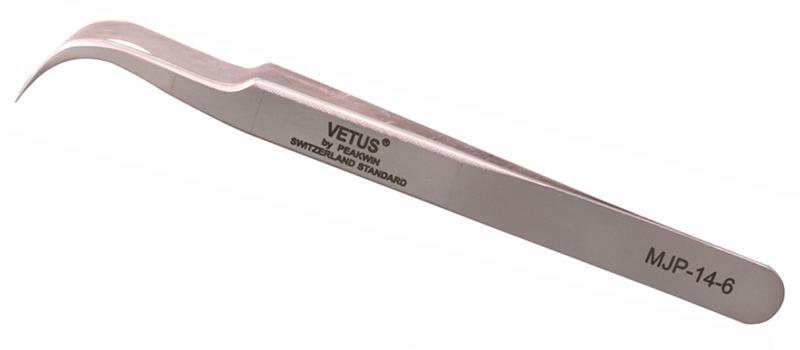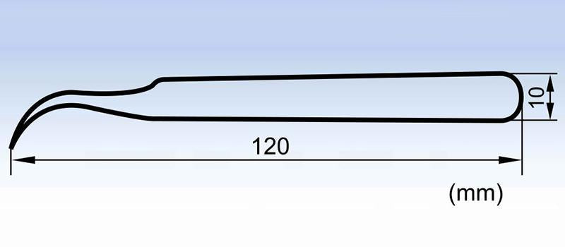 The tweezers have curved slender tips which are suitable for clamping fine objects in narrow spaces.