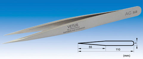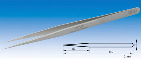 SS-SA Type SS Straight (Narrow Long Very Fine Tip) High Precision Vetus Stainless Tweezers